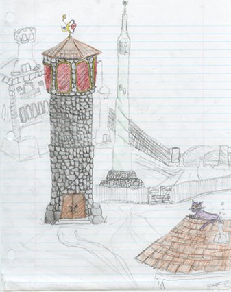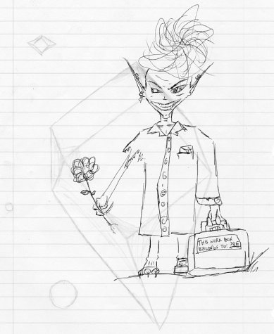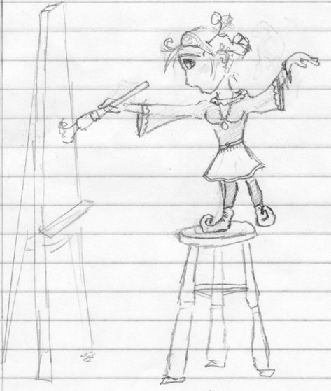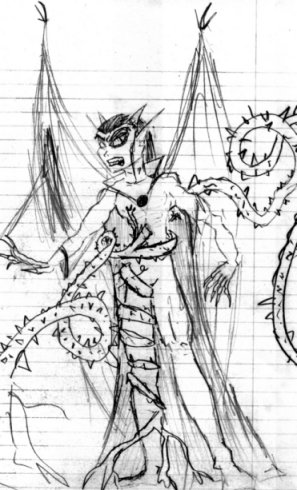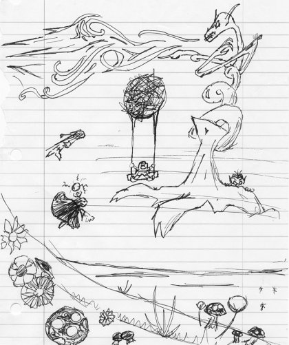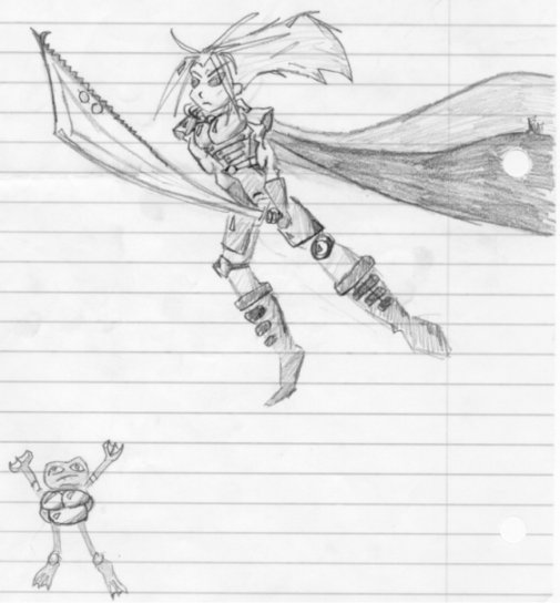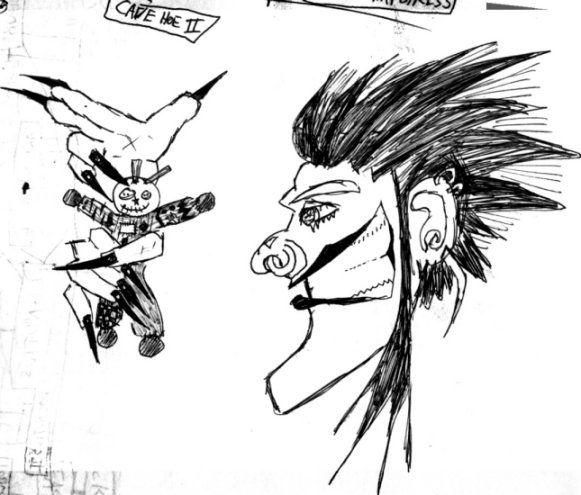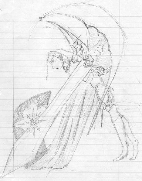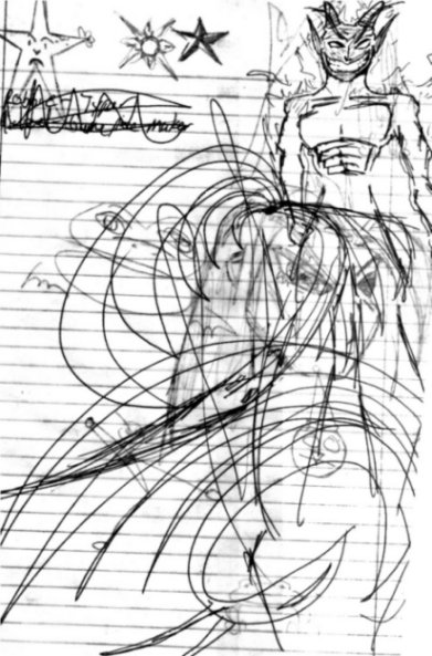 As with all my stories 95% of all the drawings here I did in highschool. You see, in highschool not only do you have nothing better to do than draw, but you also have all the neccessary materials right there: A desk, pencil, pen, paper.