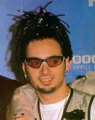 us know real "dread-loks" are when you never wash your hair (*aka Tarzan*) and you get those long curly chunks. Well Chris has done a fairly good job at