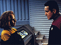 It was interesting to see the Captain and Chakotay eating together by candlelight in Janeways quarters not once but twice in this ep. What’s up with that??? Are they having a relationship?? Is Janeway leading poor Chakotay on again?!