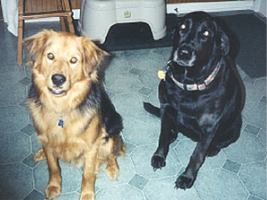 Lucky loves her doggie brother Max (Retriever/Sheperd/Chow mix). They play