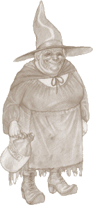 An old "grandmotherly" witch, possibly part dwarfish and part of the Lancre coven (which includes herself, Granny Weatherwax, Agnes Nitt and sometimes Magrat Garlick. She has been married at least three times, to Albert Ogg, Winston Ogg and Soberity Ogg, who all changed their surnames, since they were married into such an ancient lineage as the Oggs. All three passed away. Nanny Ogg has fifteen children: Jason, Grame, Tracie, Shirl, Daff, Dreen, Nev, Trev, Kev, Wane, Sharleen, Darron, Karen, Reet and Shawn. Most of them live in and around Lancre.