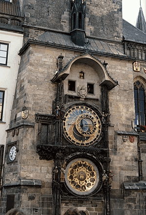 The astronomical clock in Prague, a city which Mozart loved and visited a number of times and where very moving obsequies were performed in St. Niklas church on 14 December 1791 to mark his death. The stage coach route between Vienna and Prague and the location of the staging posts have now been identified.
