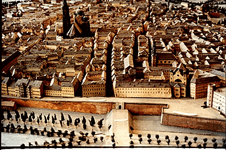 The Stuben gate, one of eight in the walls of the Inner City. The hearse carrying Mozart's coffin wouls likely have passed through here unescorted after obsequies at St. Stephen's to St. Marx cemetery some two miles away. Mozart's third class funeral was one of ten from the City on 6 December 1791. First and second class funerals were comparatively rare, about two thirds were third class while about a quarter were "gratis" (not pauper) ones.