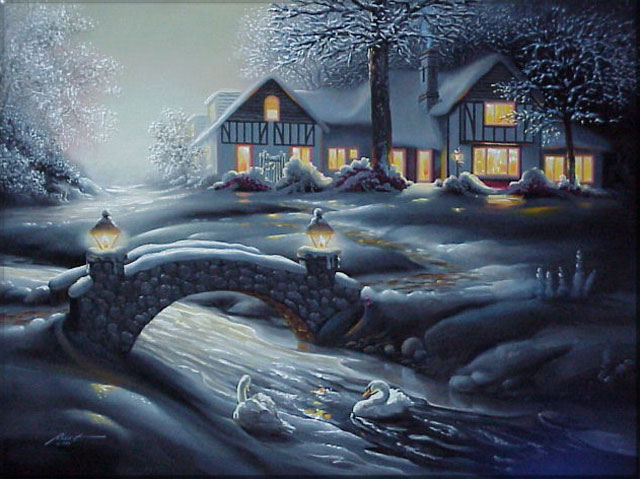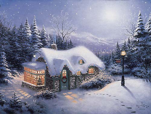 Tex-Santa Snow Cottage Winter Scene3