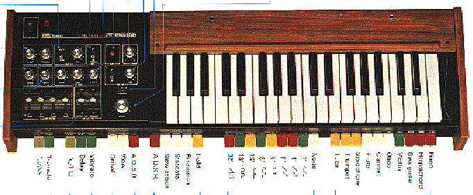 Years manufactured: 73-81 List price: $ 1095.00 Keys: 37 Monophonic Memory: 10 presets Connection jacks: Audio Out, Phones Out, CV/Gate Out, CV/Gate In, External In Users: Human League, Jethro Tull.