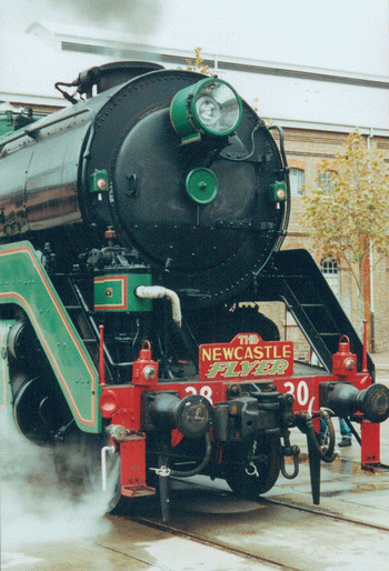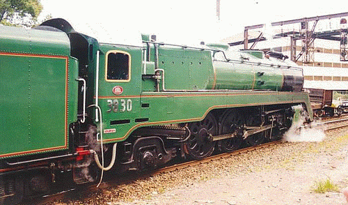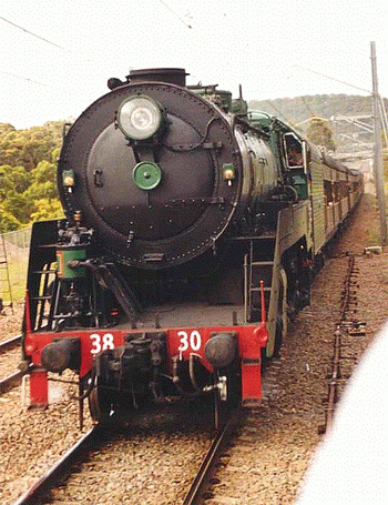 | Service History: The 25 standard engines (ie. non-streamlined) were constructed in the NSWGR's own workshops and entered service from November 1945 to September 1949. The last streamlined C38s in regular service, 3801 and 3803, were officially withdrawn in September 1967 and Febrary 1968 respectively. 3820 and 3822 the last standard C38s were respectively withdrawn in September and December 1970. (Re: 3801, 3813, 3820 and 3830 were selected for preservation) |