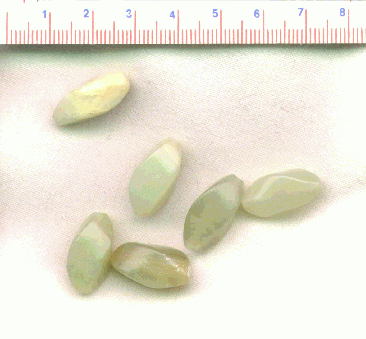 and one I'm now sure what it is, except it's a nice black(obsidian?) with some green inclusions. Each is about 40mm long and 20mm tall. The thread
