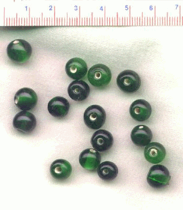 Green Druk Beads The scan make some look opaque and some transparent, but they are all the same. It's how the light hits them. 10mm round. |