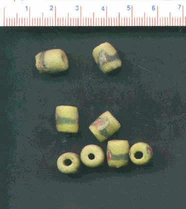 African Sandcast Beads #2 These appear to be meant to imitate banded agate. They are a creamy yellow banded with a strip of black