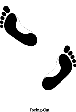 their feet pointed inwards. This is the Swan Walk or Toeing In. Some