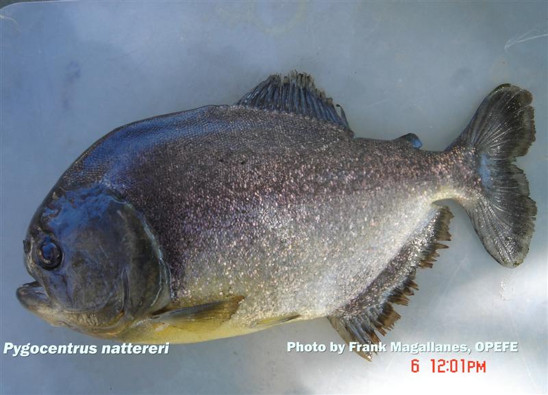 Pygocentrus nattereri, from the Mato Grosso region of Brazil, the type collected from both the Amazon and Rio Paraguay systems, described by Kner (1860) as Pygocentrus. Considered the earliest available name for the undiagnosed species composed of Pygocentrus populations residing in those areas (William L. Fink, 1993).