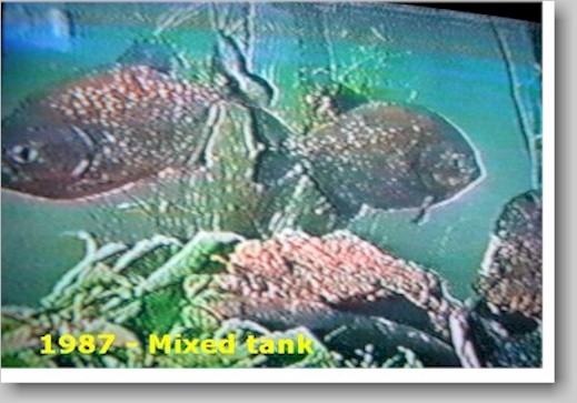 The attempt at mixing various piranha species together usually ends up in disaster for the fish. It is OPEFE policy not to recommend mixing species for the above reasons. But if you have the money to keep buying piranhas, then you will have to live with the detrimental experiment this causes captive piranhas in the aquarium. Public Aquariums do mix species, but in those situations, they are in tanks that exceed 900 gallons or more of water. David M. Schleser, former curator of the Dallas Aquarium, remarked in his book seeing and being impressed with mixed species. These mixed species were kept in a 3,000 gallon aquarium and included over 30 adult P. nattereri in a heavily planted and sky lit aquarium. The species in this aquarium included 400 neon tetras, 100 marble hatchet fish, 200 bleeding heart tetras, and 200 gold tetras. All these smaller characins were ignored as they swam by or into these groups of large piranha in this biotope.
