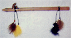 feathers and pony beads! The sound from these are really neat!! You may choose the colors for the beads and feathers.