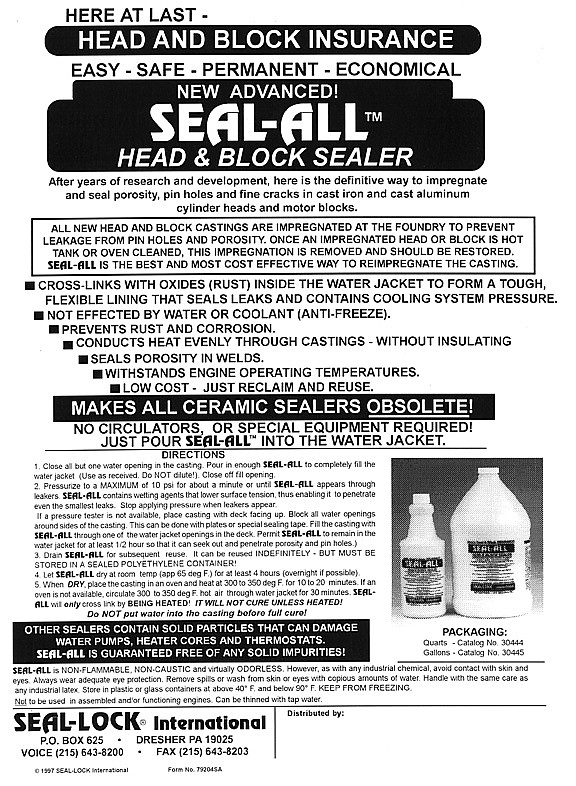 SEAL-LOCK Cold Casting Repair Process SEAL-LOCK Self Tapping Thread Repair Inserts SEAL-TABS Engine Block & Cylinder Head Sealer S-L-I- LIQUID GUNSMITH