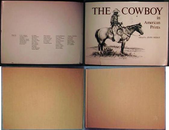 This spectacular book of American Cowboy prints was published in 1972, with a limited first printing of five thousand copies, by Swallow Press. Cloth hardcover in buff/cream color with 184 numbered pages loaded with classic cowboy prints edited by JOHN MEIGS. In FINE condition, about 12 1/4" x 9 1/4". Comes with the original unclipped dustcover (showing the retail price) which is in GOOD condition, complete, but contains several tears/rips. $160.00
