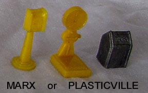 Marx and Bachmann had competing lines of plastic buildings and accessories to be used with model trains. Marx called their line Marxville while Bachmann used Plasticville as their brand.