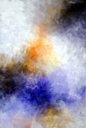 This 3' by 2' painting was one of my earlier responses to an Advanced Painting assignment. It utilizes a split complementary color scheme which is one of my favorites and the impressionistic style brushwork created a unique effect of shimmering light. |
