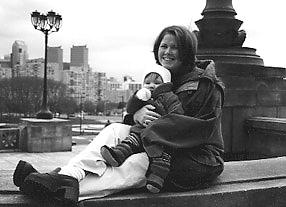 This was a short trip to the top of the Philadelphia Art Muesum steps during a visit from my sister Kristin on April 1st of 2001. We were showing Kris around the sights of the city and took advantage of the photo shoot. These were actually taken in Black and White-not converted by a photo program, on an overcast day. As you can see, April 1st was a pretty cold day (gloves on Kaley plus a hat). This is the spot that Rocky ran up in the movie "Rocky" before the big finale of the movie.