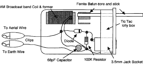 the Crystal Radio without an Aerial or Earth wire, to see if you
