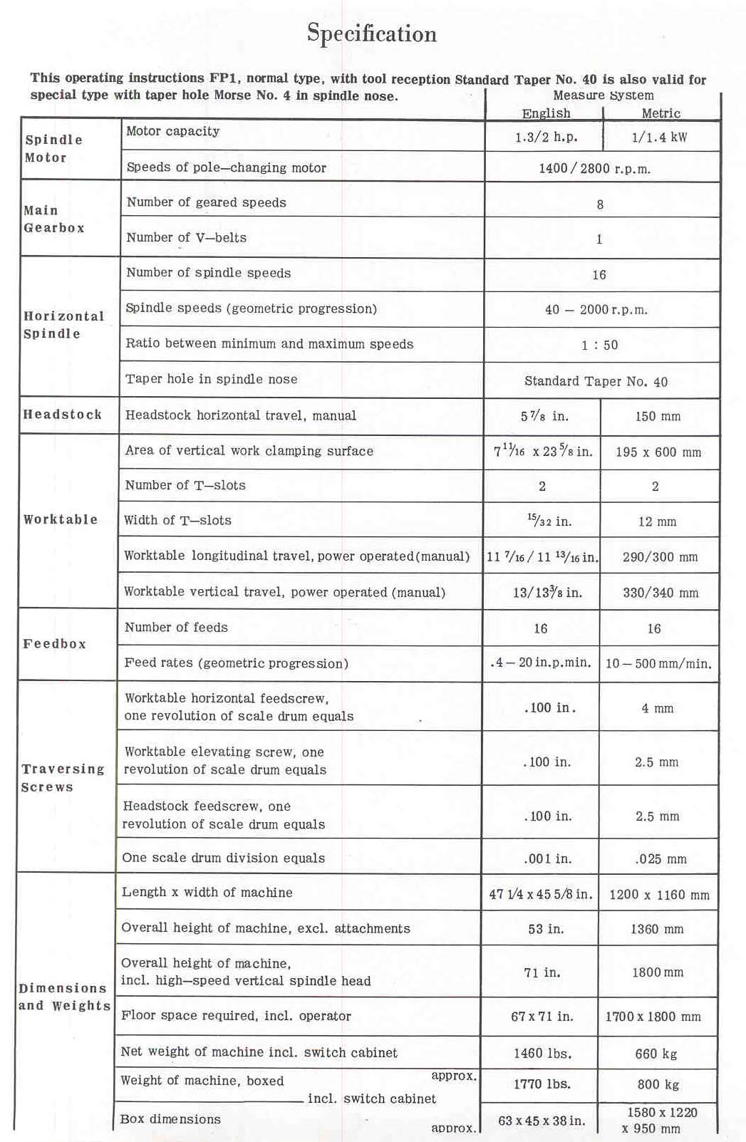 mechanical condition. The FP1 occupies a small footprint but is stout enough to take cuts that a