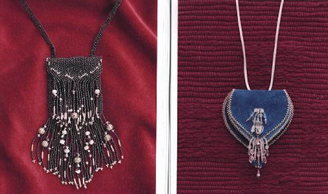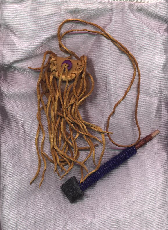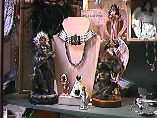 Couney Shell is a talented jeweler from Cherokee NC. His jewelry is a beautiful blend of Cherokee style and modern taste. The choker is made of white bone pony beads and assorted colored beads. A sterling silver native in full head dress is mounted on a leather square in the center. Necklaces, bracelets and earrings are made with genuine gemstones. ![]() Whispering Spirit creates beautiful medicine bags of leather and seashells and turtle shells.
