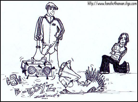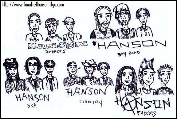 Hello. This is my Hanson artwork, remember this page? :) A while ago it got deleted(grrr angelfire!) and so I drew some more stuff and, uh, put it here! :) I'll add some of ya'lls art work too! Send it to "fanatic4hanson@hotmail.com" or you can even put the link up on the guestbook if your lazy like me ;)