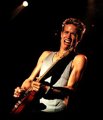 DID YOU KNOW? Jonny recently moved out of his parents house into his own on Lake Minnetonka in MN. The only book that he ever read cover to cover is "Gone with the Wind". He reads Popular Science Magazine. Jonny loves the "old, worn look" He always wanted to be an astronaut. He is a huge Star Trek fan and has seen every episode of the New Generation. He cut his hair because he keep chokeing on it on stage(Like in the movin' pic below). Jonny can't read music, he plays by ear. He loves to read movie scripts The track "Watching You" it was all done in one take? No editing, Jonny also says it was his tribute to the late Luther Allison, He even used Luthers guitar on the track! Jonny was not actully from Fargo, but a small town outside of Fargo called Casselton. Jonny got a tattoo on his 18th birthday on his upper right arm! It's a symbol from the Mayan calender. Jonny failed his drivers test 3 times (the written part) and also failed the behind the wheel! But don't worry, he has his license now. | |||