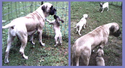 Abbie safely delivered 10 live puppies on 6/18/2000. Just imagine, 10 little lives that will NEVER contribute to auction breeding. Ten Mastiffs that will NOT live in the commercial dog breeding industry. The cycle stopped with each one of them. These are the first pictures of Abbie's darlings: