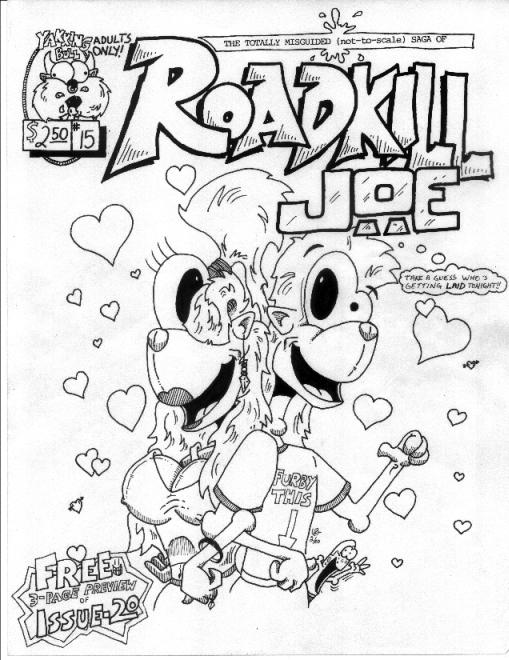HERE IT IS!! THE FIRST LOOK AT THE COVER OF THE ILL-FATED ISSUE-15, WHICH IS FINALLY IN PRINT NOW!!! Joe FINALLY gets the book back to where it's supposed to be...short, funny comics! We also say a permanent good-bye to one of Joe's beloved sidekicks, but it's not a leave you'd EVER expect! This issue also features a special Preview of the upcoming Roadkill Joe MegaIssue-20!! Be sure to check it out!!!!