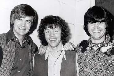 Photograph of the Everly Brothers with Warner Brothers promo man Bruce Bissell