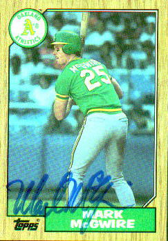 The Rookie Year (1987) During Marks rookie year his signature underwent a few changes and variations during that year. Early in the year Mark tended to have a long flattened "G". You could still read all of "Mark" but pretty much all you see of "McGwire" is the "McG" He signed a lot of 8x10s for Scoreboard with this type signature.