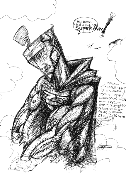 Superman could be great as a lighthearted surrealist romp with some extreme battles and just chock full of earth shattering consequences and loss, a cross between Miracle Man, DragonBall Z, and some of the shit Moebius was doin back in the seventies.