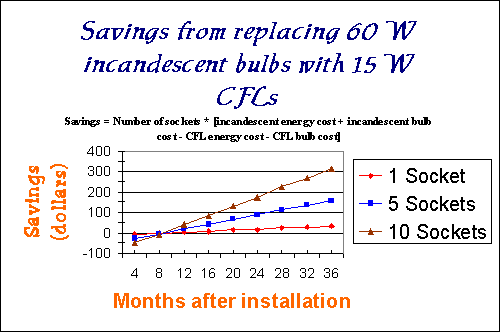 Savings from Replacing 60 W Incandescent Bulbs with 15 W CFLs