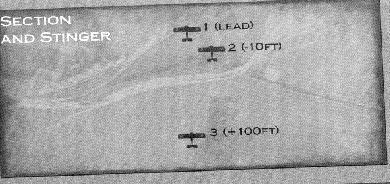 This formation requires at least three planes. It has a lead, one plane in left Echelon and one in right Echelon. Both stach 10 feet ± the lead.