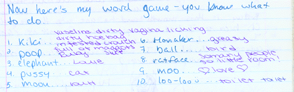 Well, since my instructions for the first word game aren't that readable, I'll explain it now. Basically, the reader writes down the first word that comes to their mind, after reading the words listed. Get it? Got it? Good!