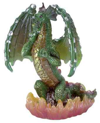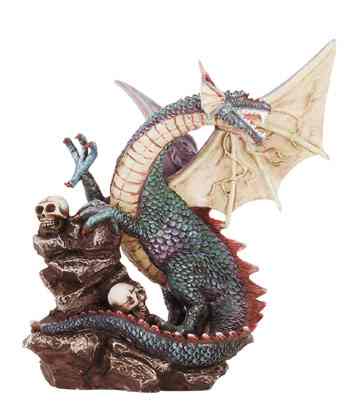 A fiery dragon, wings spread, protects his lair which is filled with mementos of errant adventures. 6" x 6 1/4" x 6 1/4" high. #31045 $15.00