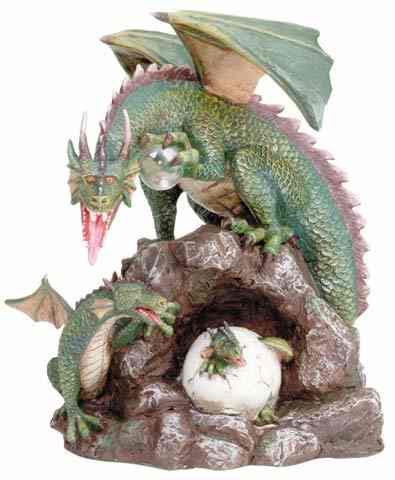 A family of dragons cast in richly painted poly resin with fine details and hand painted. 5 1/2" x 6" x 7" high. #31059 $20.00
