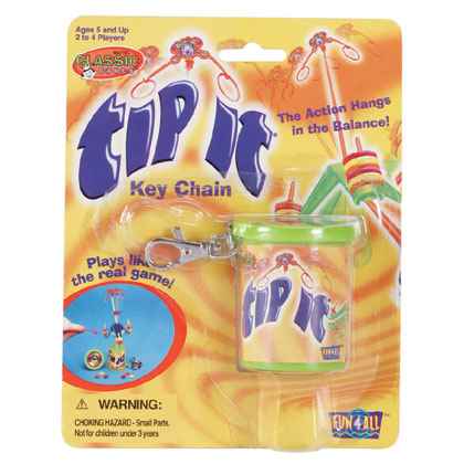 everything needed to play the game "tip it". Container is 2" in diameter x 2"