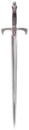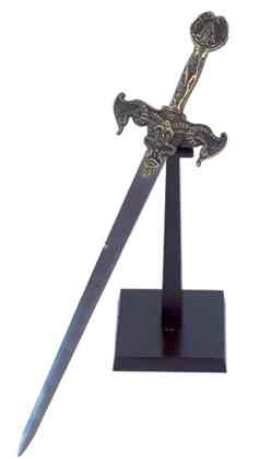 Reminiscent of swords from the Medieval age, this finely-crafted, Arthurian design weapon comes with a wooden display board. 34 1/2" long. #31483 $40.00
