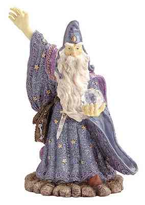 Holding his flaming sword aloft, Merlin calls forth the denizens of the underworld. 4 3/4" x 4 3/8" x 10 1/4" high. #31385 $15.00