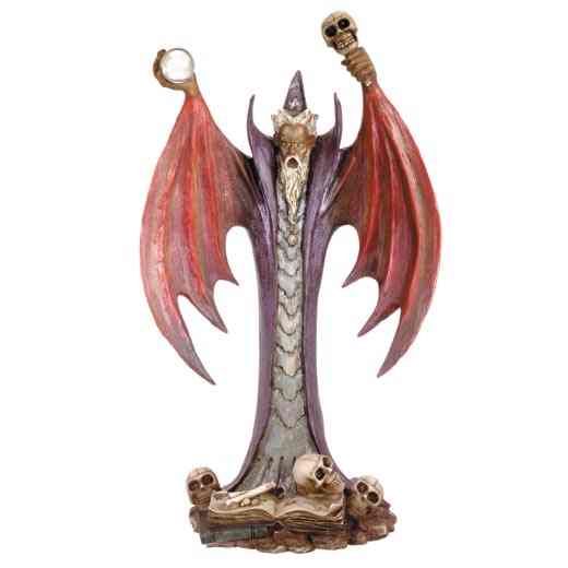 Conjuring a spell with skull and "crystal" ball, this magical Merlin adds a touch of devilish mystery to his incantations. 5 1/4" x 3 3/4" x 9" high. #30727 $15.00