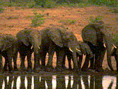 cows, calves and young offspring. Such herds are always led by an old female. Apart from drinking