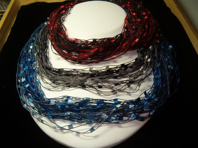 Multiple strand necklaces made of scarf fabric in red, black or blue