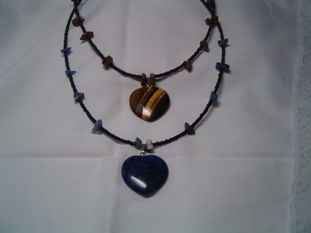 Gemstone Heart Necklaces Tigers eye and Hematite shown also available in Red Jasper, Amethyst Turquoise, Sodalite, and Unikite Rose Quartz, and various colors of agate.