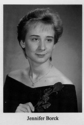 I have received tidbits of information on Jen Bork, and I have combined them all to create this story. Cagg went on a field trip to New York City circa 1988 with his class. They spent the night in NYC in a hotel, just so Cagg could pull his plan off. Cagg woke up in the middle of the night, went to Bork's hotel room, and carried her out of the hotel. When everybody woke up, they realized that Cagg and Bork were gone. Cagg, being the rapist that he is, most likely had an affair with her. Cagg and Bork returned to the hotel, and Cagg made up some BS story. But most of the kids didn't believe him. When the students returned to Masuk, they notified the administration, and Cagg was suspended from teaching. They did not know if Cagg really did anything to her or not, but even to this day, if you shout out "Bork" in class, Cagg will go nuts. The funny thing is, I think Bork was on Cagg's side. She denied being touched by him in a "bad" way. This really happened. It is not a rumor. You interepret this situation however you want, but I think Cagg & Bork made love. The above picture shows Bork holding a rose from Cagg!