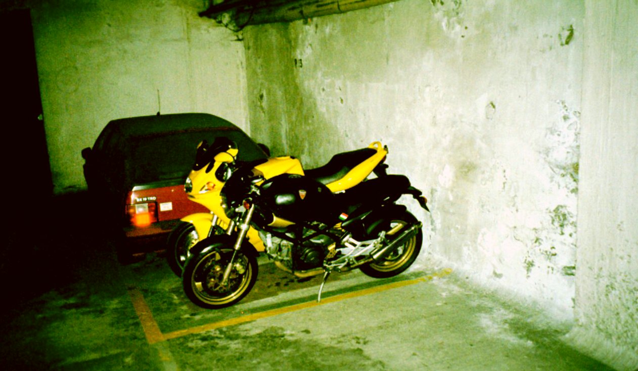 Il Mostro and my ST4, side to side. Actually, the size difference between a Monster and a ST4 is less than it looks or feels... the most important difference (IMHO) is that the seat of a Monster is a lot lower so it definitely feels as if a ST is a lot bigger...
