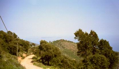 A second magnificent view from a nearby mountain, the "Col Notre Dame". In the background you can (vaguely) see Ile Ste-Margueritte and Ile St-Honorat, two small isles just outside the coastline...
