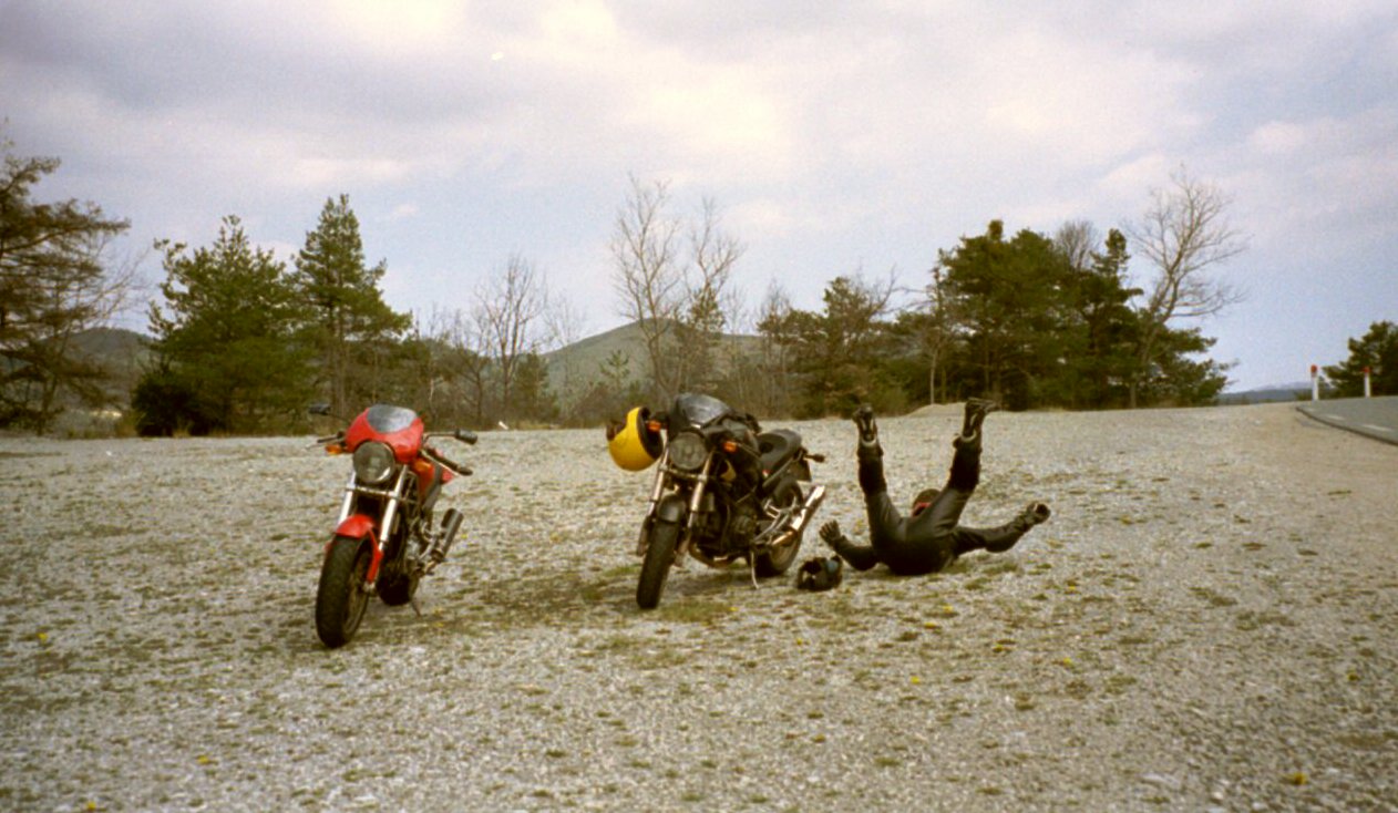 Later that day... Ief doing a nice impression of "exhausted Ducatista falling over".