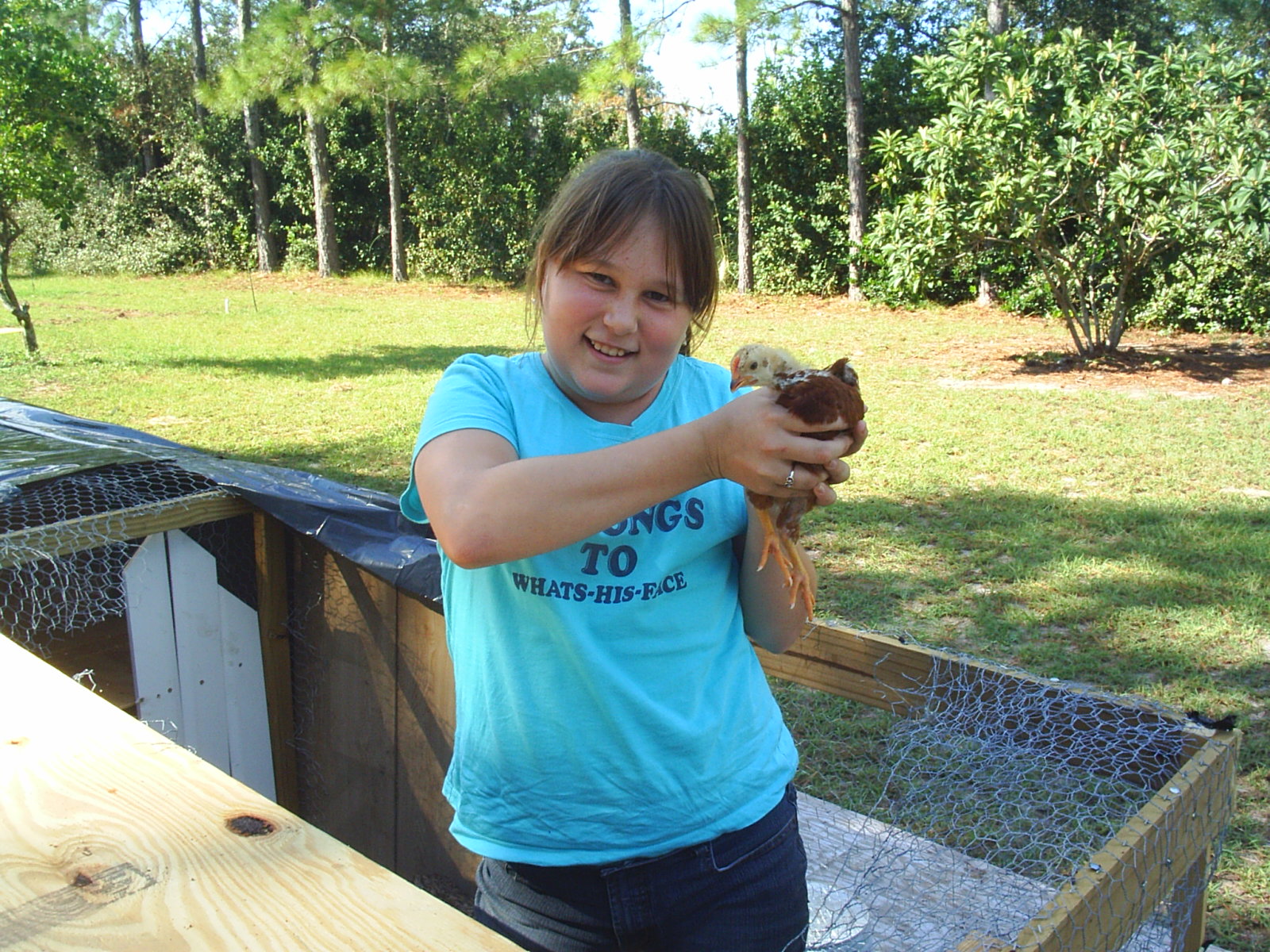 Traci with a Rhode Island chick