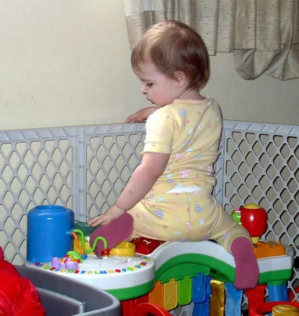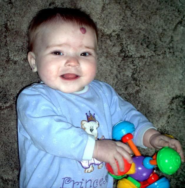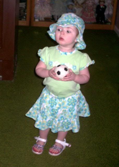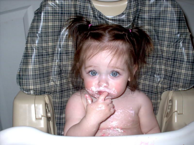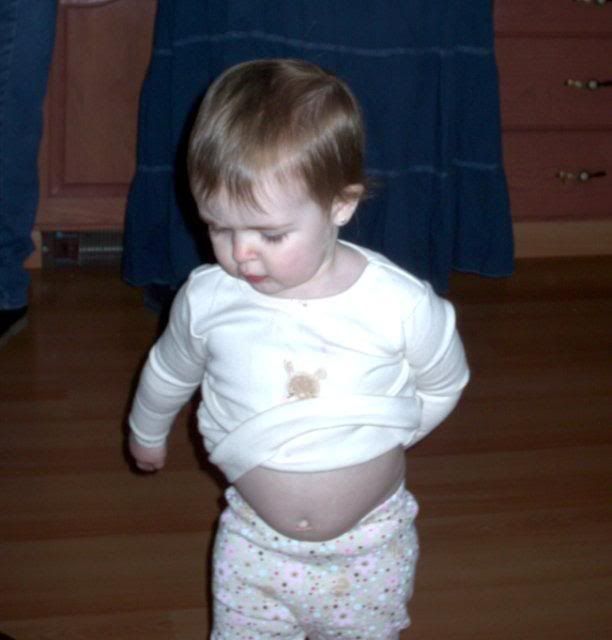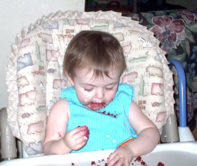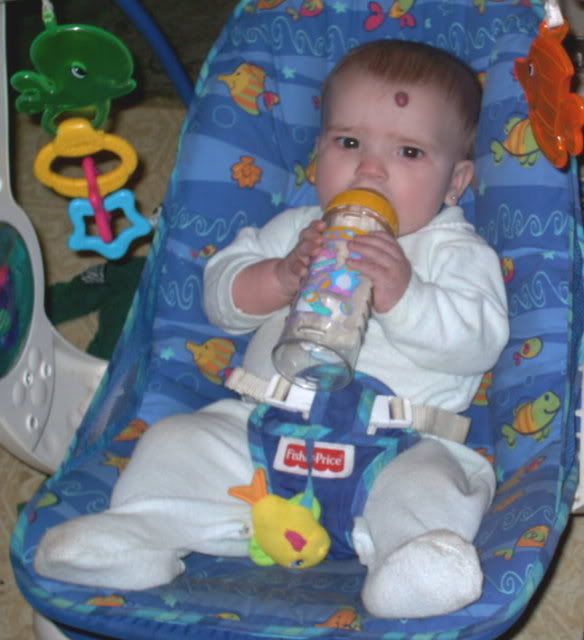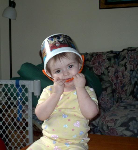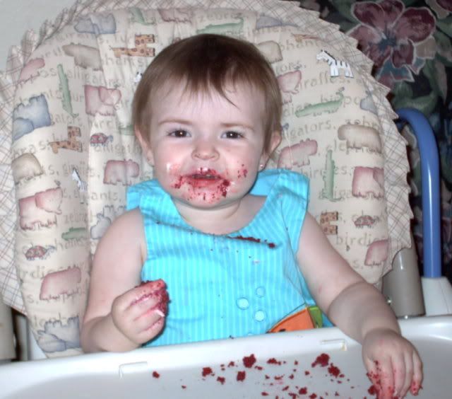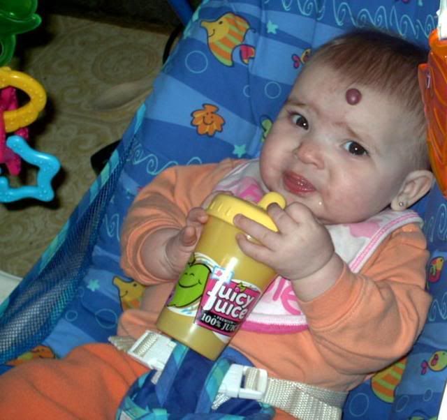 Enjoying her new strawberry shortcake cup, this is how she got cranberry juice on her new outfit!